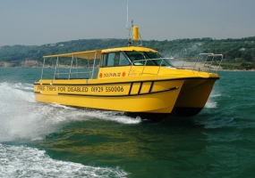 Cheetah Marine's first dedicated wheelhchair catamaran was a 7.4m built for Green Island in Poole Harbour in 2000. This delivery was closely followed by Friends of the Dolphin, who ordered their first 9.95m in 2001. Committee boats, families and charter boats also wished to incorporate the flexibility into their builds.